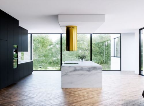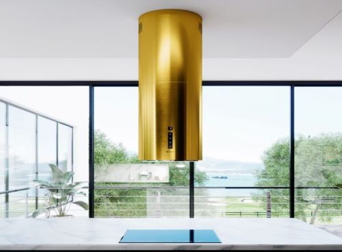 Ця витяжка призначена для встановлення над кухонним островом. Її також можна розташувати як настінну витяжку, прикріпивши її до стелі впритул до стіни. Для виготовлення острівної витяжки Heweno Isola 39.1 Light Gold використовувалася нержавіюча сталь (нержавіюча сталь).