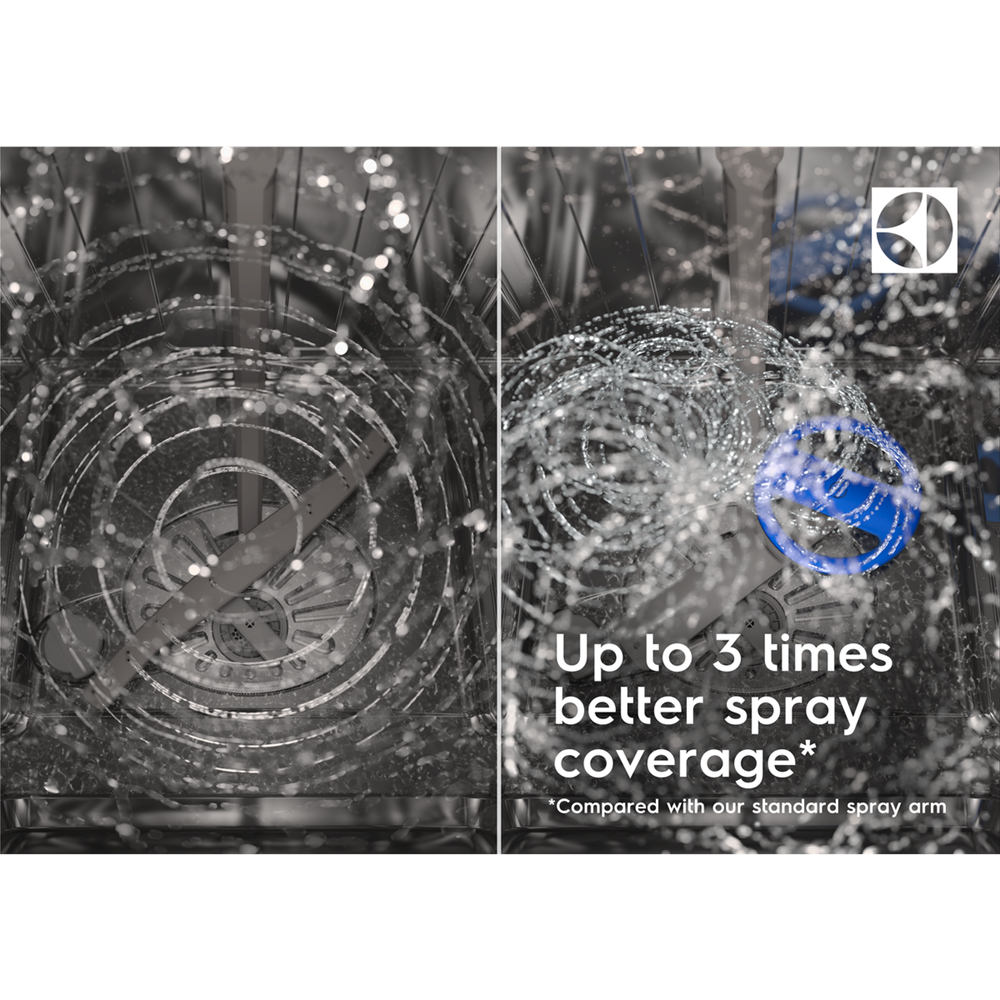 Гарантія ретельного миття посуду Розпилювач посудомийної машини SatelliteClean® 600 гарантує ідеальну чистоту кожного завантаження посуду. Наша технологія забезпечує до трьох разів ефективніше розпилення води порівняно зі стандартним рішенням, тому вона може впоратися навіть із щільно упакованим посудом.
