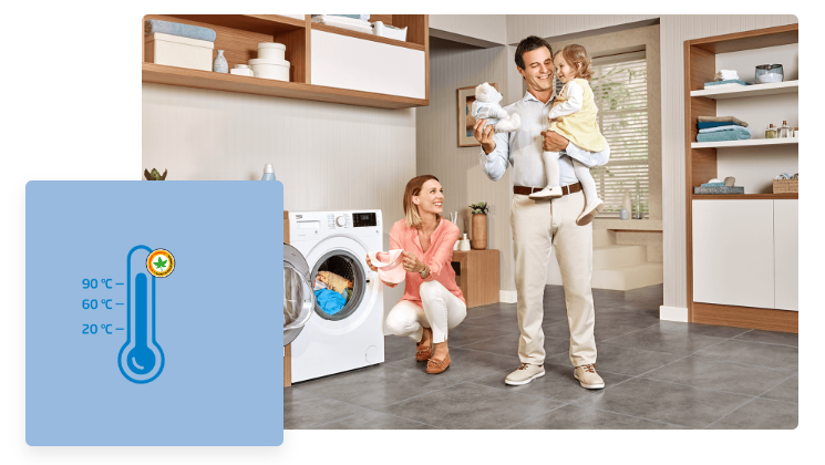 Люди, які страждають на алергію, чудово знають, що навіть після прання на одязі можуть залишатися пилові кліщі та бактерії. Програма Hygiene+ Wash & Dry™ поєднує функції високочутливого контролю температури з додатковими циклами полоскання та віджимання, щоб забезпечити видалення цих мікроорганізмів із білизни. Цикл 60°C, що працює від 20°C до 90°C, був схвалений Allergy UK Foundation для усунення 99,9% алергенів.