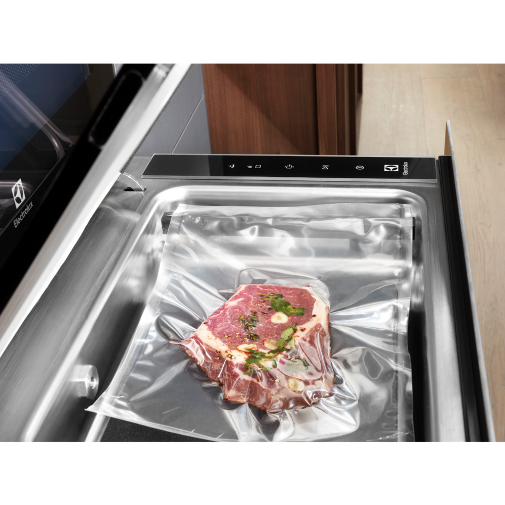 Відчуйте повний смак, готуючи за методом SousVide Розширте свою кулінарну креативність і «зафіксуйте» смак за допомогою вакуумної шухляди. У вакуумній упаковці, а потім приготовані за методом SousVide, страви зберігають вологу та набувають насиченого смаку. При цьому вони зберігають консистенцію та поживні речовини.