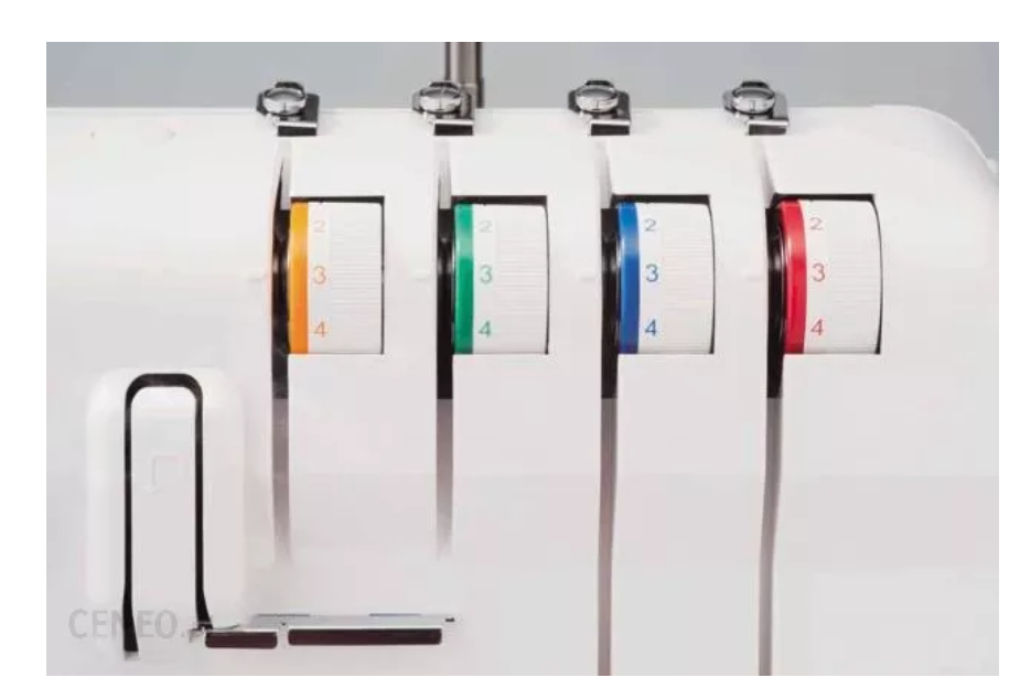Заправити нитку в оверлок надзвичайно просто. Кольорові шляхи дозволяють безпроблемно направляти нитку. Кожна точка, через яку повинна проходити нитка, позначена кольором. На корпусі оверлокера також є карта, яка показує правильний шлях їх маршрутизації.