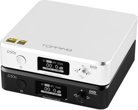 Додатковий ЦАП D50SUSB із Bluetooth aptX Підтримує DSD512 і PCM 32-біт/768 кГц USB у D50s підтримує DSD64-DSD512 і PCM 16-біт/44,1 кГц – 32-біт/768 кГц. Оптичний і коаксіальний порти підтримують PCM до 24 біт/192 кГц і DOP DSD64. Bluetooth. D50s має сертифікацію бездротового зв’язку високої роздільної здатності SONY LDAC. Завдяки використанню чіпсета CSR8675 пристрій підтримує протоколи LDAC/AAC/SBC/aptX/aptX-LL/aptX-HD. Для досягнення кращої якості звуку пристрій перетворює сигнал в аналоговий за допомогою конвертера ES9038Q2M. Режим Bluetooth можна вимкнути окремо в меню.