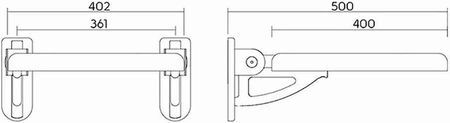 •- сидіння без спинки - довжина: 40 см - ширина: 36,1 см - нержавіюча сталь, гладка, полірована поверхня - кріплення на пластинах 70 x 190 x 15 мм - з отворами для 3 монтажних гвинтів - жорсткий набір для настінного кріплення включено ( масивна цегла, бетон) - хромований елемент, що закриває кріпильні гвинти - сидіння, оснащене знімною панеллю з ПП - безпечний механізм нахилу сидіння - максимально допустиме навантаження: 200 кг